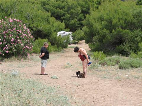 Bei Elia, direkt am Meer fanden wir eine Bleibe für die Nacht. Die Polizei duldete das Stehen nur für eine Nacht. Es wurden alle Nummern der Camper aufgeschrieben und uns gedroht, sollten wir nach 24 Stunden noch hier stehen, würde es uns 150,- Strafe kosten. Abends kam endlich der lang ersehnte Regen, was uns aber nicht störte, es gab genug zu Essen und Trinken. Tagesfahrt 123 km | |