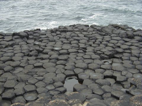 The Giant's Causeway ist eine Sehenswürdigkeit, die man nicht versäumen sollte. Vor 60 Mill. Jahren gab es einen Vulkanausbruch unter der Meeresoberfläche und die Lava kristallisierte in sechseckigen Basaltblöcken. Diese kann man begehen - kostenlos (allerdings zahlt man für den Parkplatz EUR 10,00). Es lohnt sich auf jeden Fall, die Felsblöcke sind einzigartig auf der ganzen Welt und das Panorama ist überwältigend, trotz der vielen Leute. | |