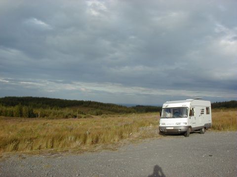 Ein Übernachtungsplatz neben einer einsamen Aussichtsstraße im Hügelland. | |