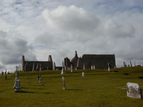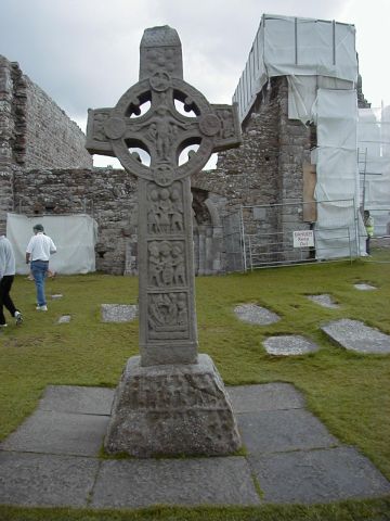 Clonmacnoise Monastery liegt im Lake District, nahe Athlone in einer Schlaufe des Shannon River. Gegründet im 6. Jhdt., war es geistiges Zentrum Irlands im Mittelalter. Durch Plünderungen und Brände im 15. Jhdt. wurde das Kloster zerstört. Heute ist es noch als Friedhof aktiv und berühmt für 3 Hochkreuze mit reichhaltigen Reliefs, wie z.B. das "Cross of Scriptures". | |